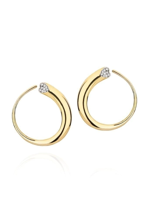 Introducing the Brinco Argola Coleção Eterna—a magnificent pair of earrings that embodies elegance and timeless beauty. Crafted from luxurious 18k yellow gold, these hoops feature a stunning heart design adorned with 0.09cts of sparkling diamonds, adding a touch of sophistication to your look.